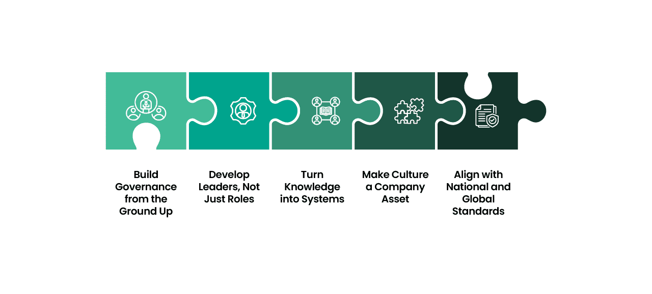 - Cultural Resistance to Structure: Many startups resist formal governance, seeing it as bureaucracy that slows innovation. Yet without structure, companies remain fragile and over-reliant on founders. Building accountability systems, documenting key processes, and fostering a culture of transparency turn governance into a growth enabler rather than a constraint. By framing structure as a foundation for autonomy, founders can align their teams around long-term goals.