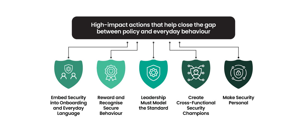 Shifting an organisation’s culture does not happen overnight. However, it is one of the most critical steps in building resilient cyber governance. To create a culture that sustains strong governance, security must be embedded into the organisation’s language, leadership, and daily experience. The goal is not just compliance but genuine commitment.