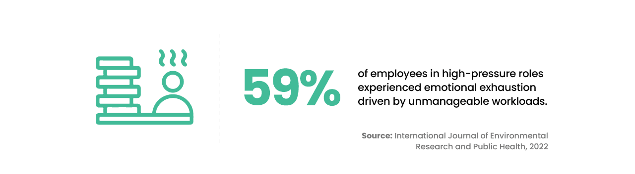 Overwork and role ambiguity are leading contributors to employee burnout. In 2019, the World Health Organisation classified burnout as an occupational phenomenon resulting from chronic workplace stress that is not successfully managed. Reinforcing this, a 2022 study in the International Journal of Environmental Research and Public Health reported that 59 per cent of employees in high-pressure roles experienced emotional exhaustion driven by unmanageable workloads.